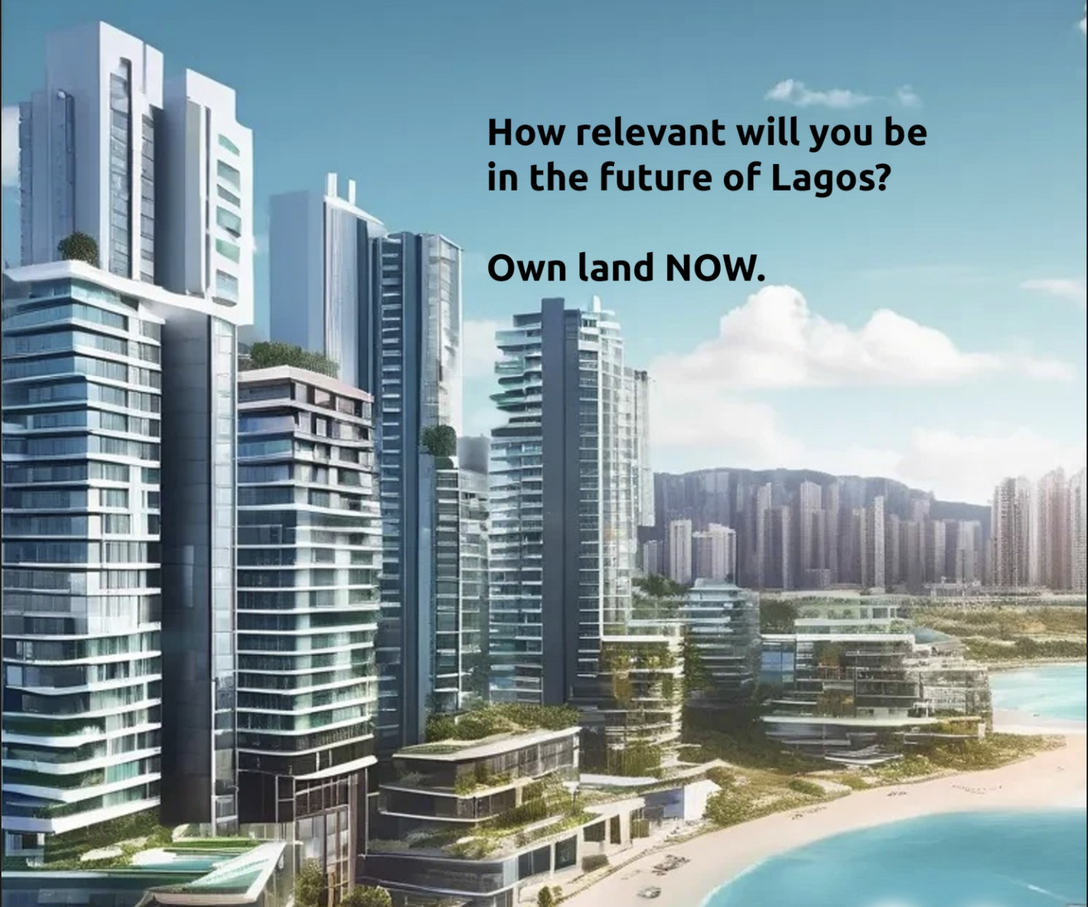 "METRO SMART CITY" is the futuristic real estate development that will rise from the Elutu-Odibo Land Reclamation Project sited off Freedom way, Lekki Phase 1. It envisions a pioneering urban environment where advanced technology, sustainability, and community thrive together. Our goal is to set a new standard for smart living by integrating cutting-edge innovation with exceptional quality of life, creating a vibrant and inclusive city by the lagoon that inspires and enriches all who call it home.